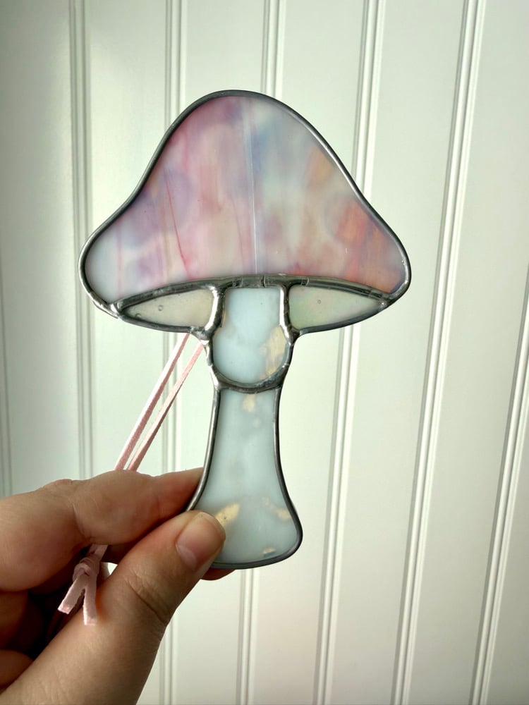 These super cute mushrooms are perfect to add a colorful pop to your wall or window! There's a hidden loop on the back to hang them from (best seen on the purple mushie).